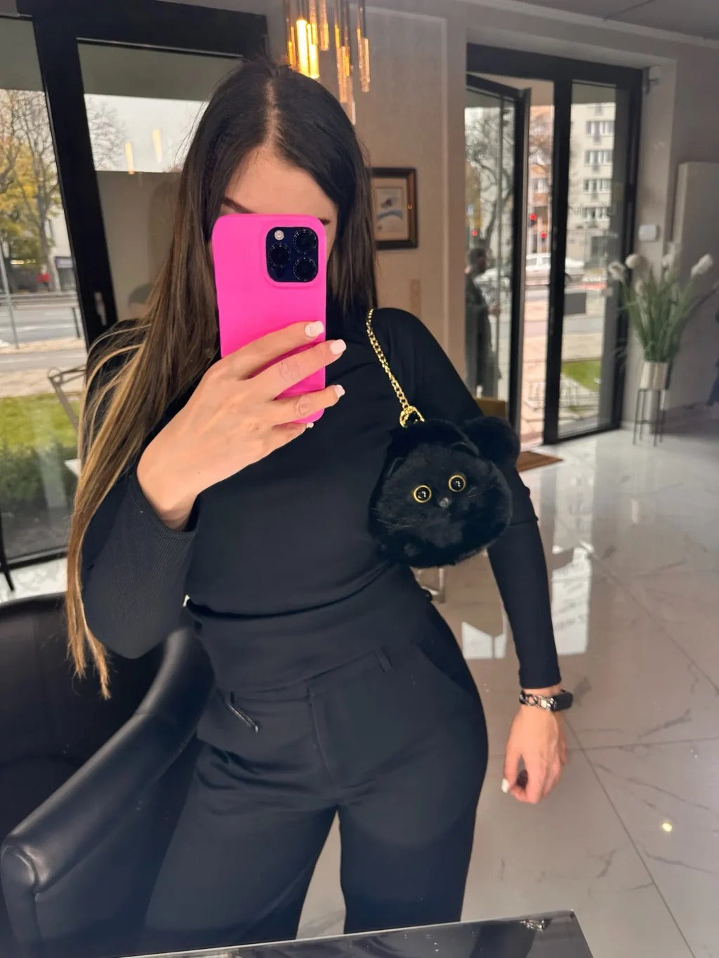 حقيبة القطة الفاخرة بفرو ناعم وعيون ساحرة